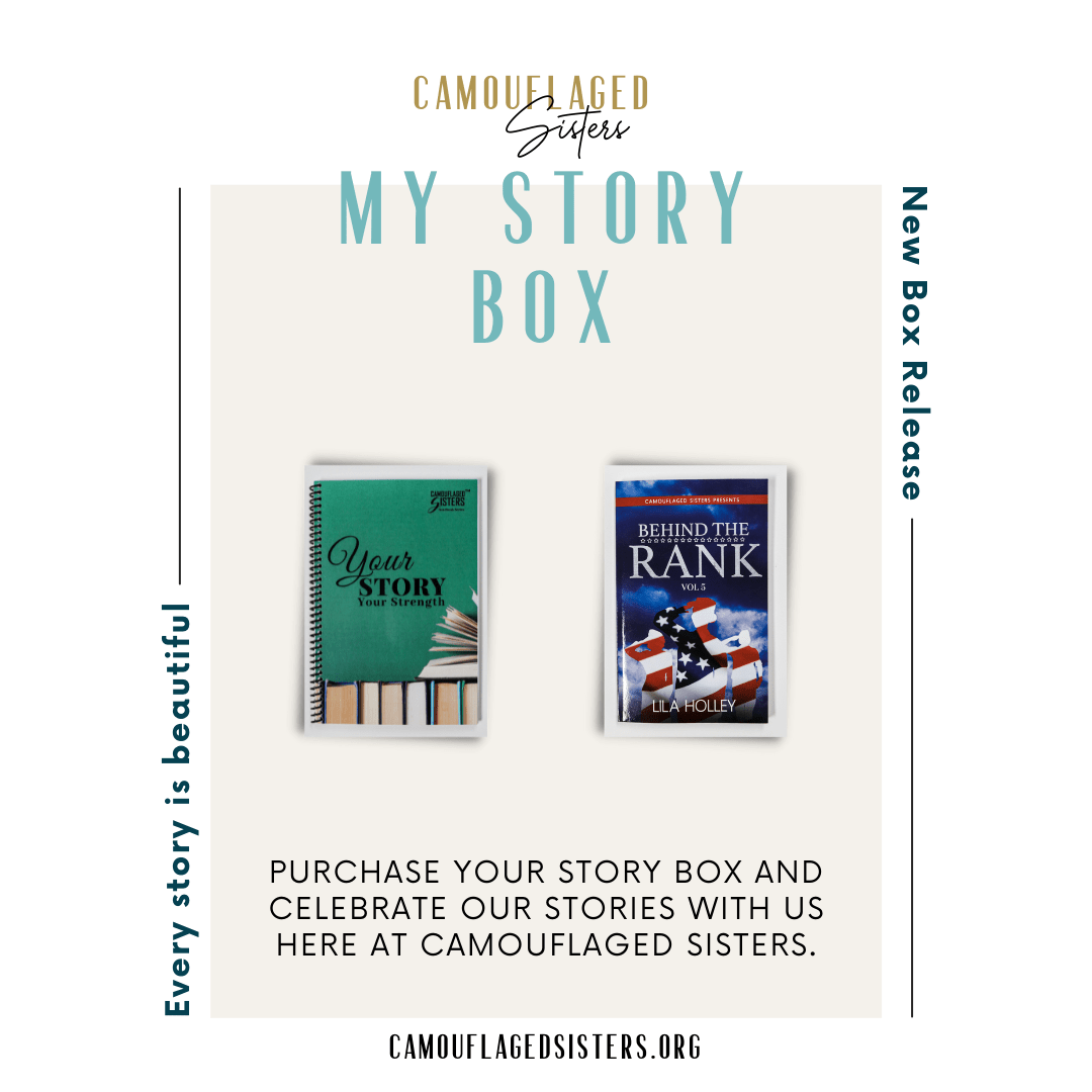 In honor of Women’s History Month, we are celebrating our stories with the My Story Box. It includes a Camouflaged Sisters book, journal & pen set, safety kit (face mask & hand sanitizer), and a surprise gift. Read our stories, be inspired, and write your own story in your journal notebook. Your Story is Your Strength.